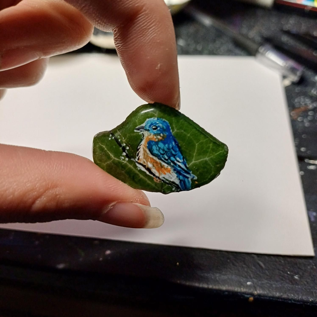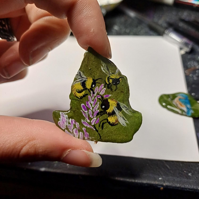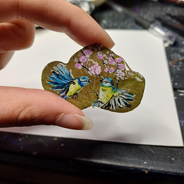 Première série de peintures sur feuilles de lierre aimantées 🐝🐦