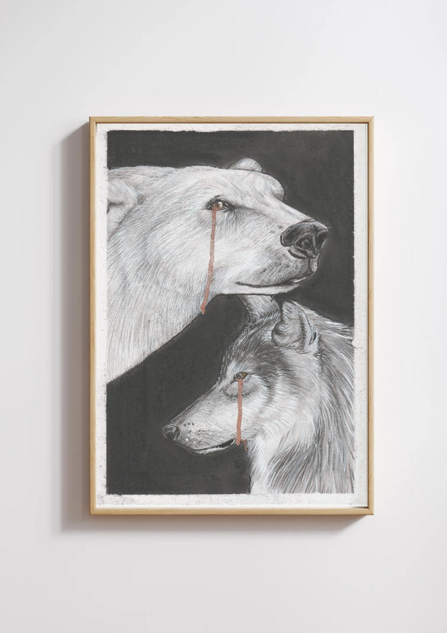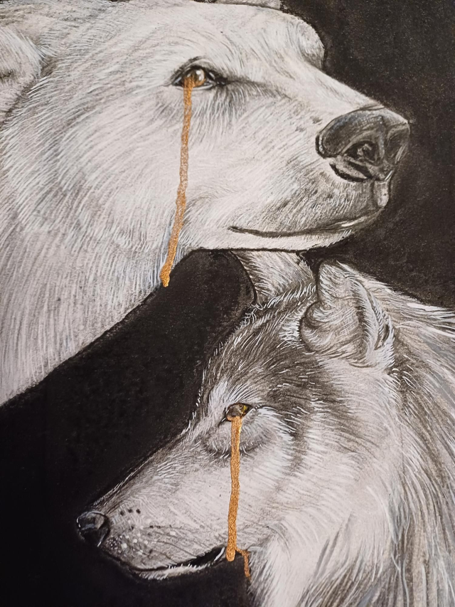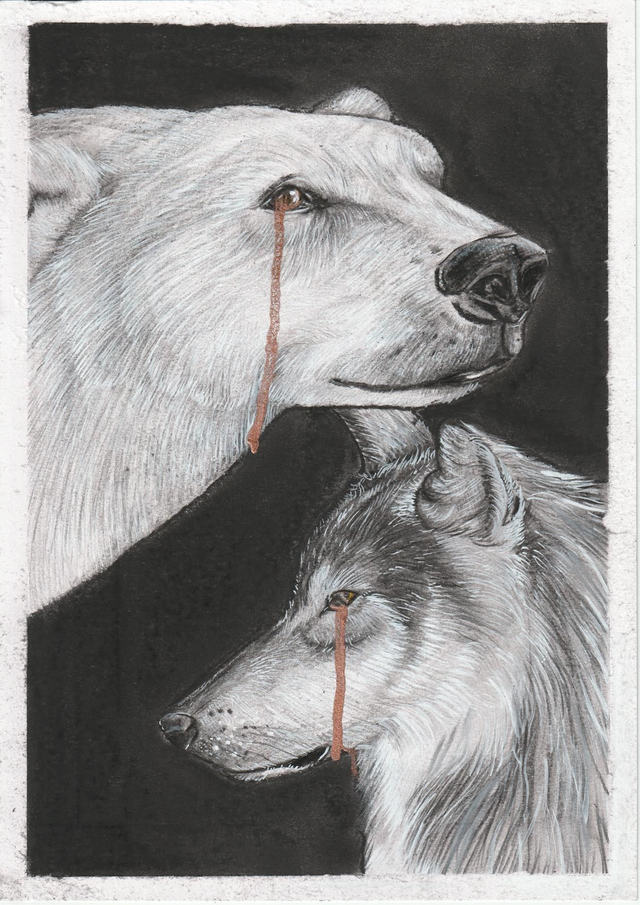 Une œuvre originale basé sur l'ours polaire, oublié sur sa banquise fragile, et le loup, massacré par les chasseurs. Deux animaux magnifique, puissant et sauvage en grand danger.