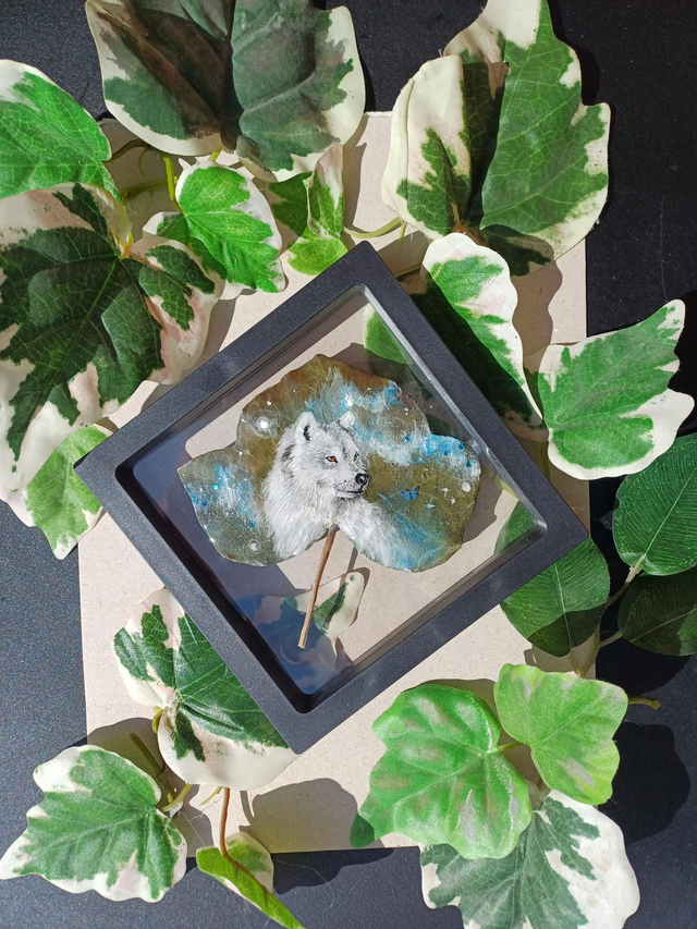 ✨️ Plongez dans une ambiance magique et envoûtante avec cette œuvre unique, réalisée sur une véritable feuille d’arbre. Chaque détail du loup est sublimé par une superposition délicate de peintures et une finition en résine qui apporte un léger effet 3D, donnant vie à cette création originale.