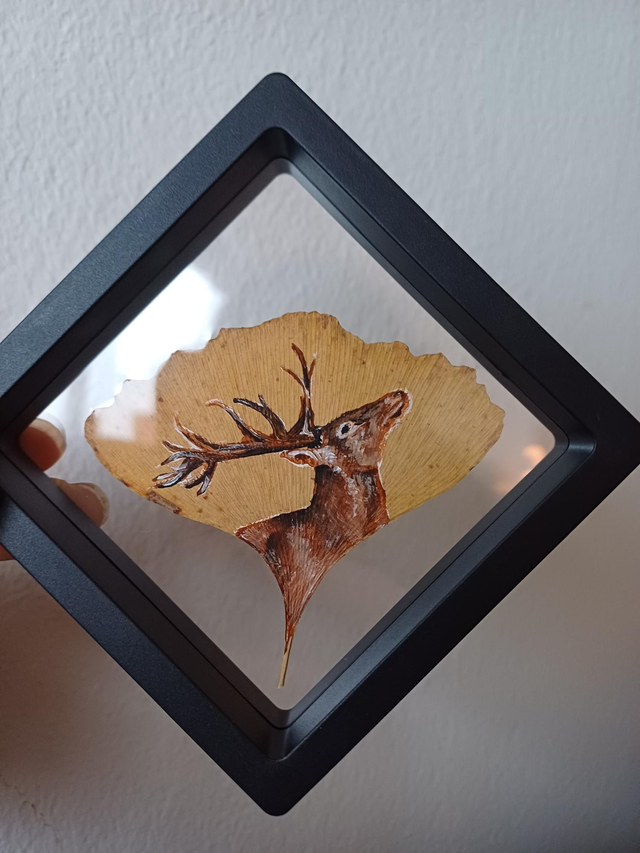 Cerf - Peinture sur feuille đ