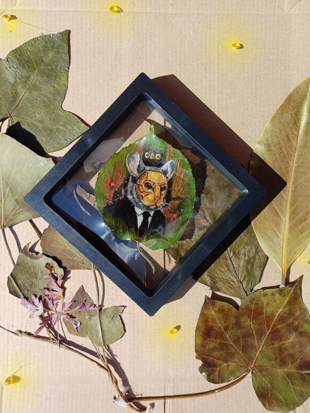 Peinture originale sur véritable feuille de Kiwi, mettant à l’honneur les thèmes Chinchilla, Squid Game & vip.